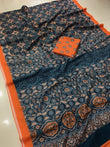 Ajrakh Print Premium Silk fabric Saree With very soft in texture.. Light weight Silk Fabric with a rich glaze .