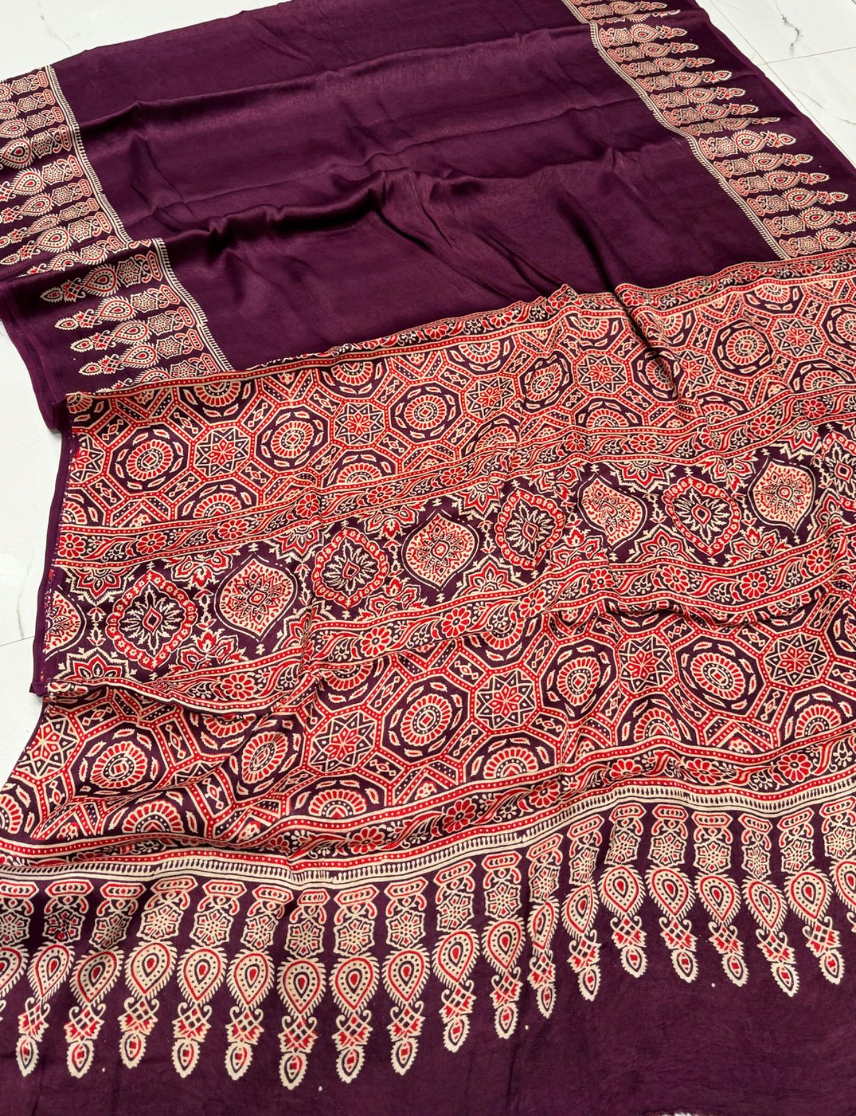 WINE AJRAKH SAREE.